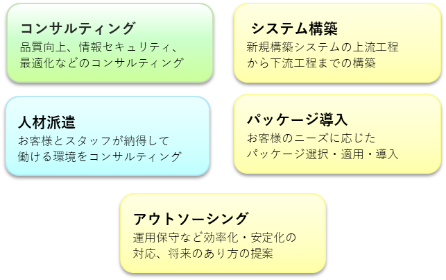 使いやすく品質の高いシステムやサービスを提供することを念頭に置いて、システムの設計・開発・運用を行っています。これからの社会はICTが支えると言われる現在、システム設計・開発のプロジェクトでは、より一層の品質、スピード、正確性が強く求められます。我々はその要望に応えつつ、システム導入後の活用性・利便性も考慮したお客様に最適なシステムを提案・提供していきます。