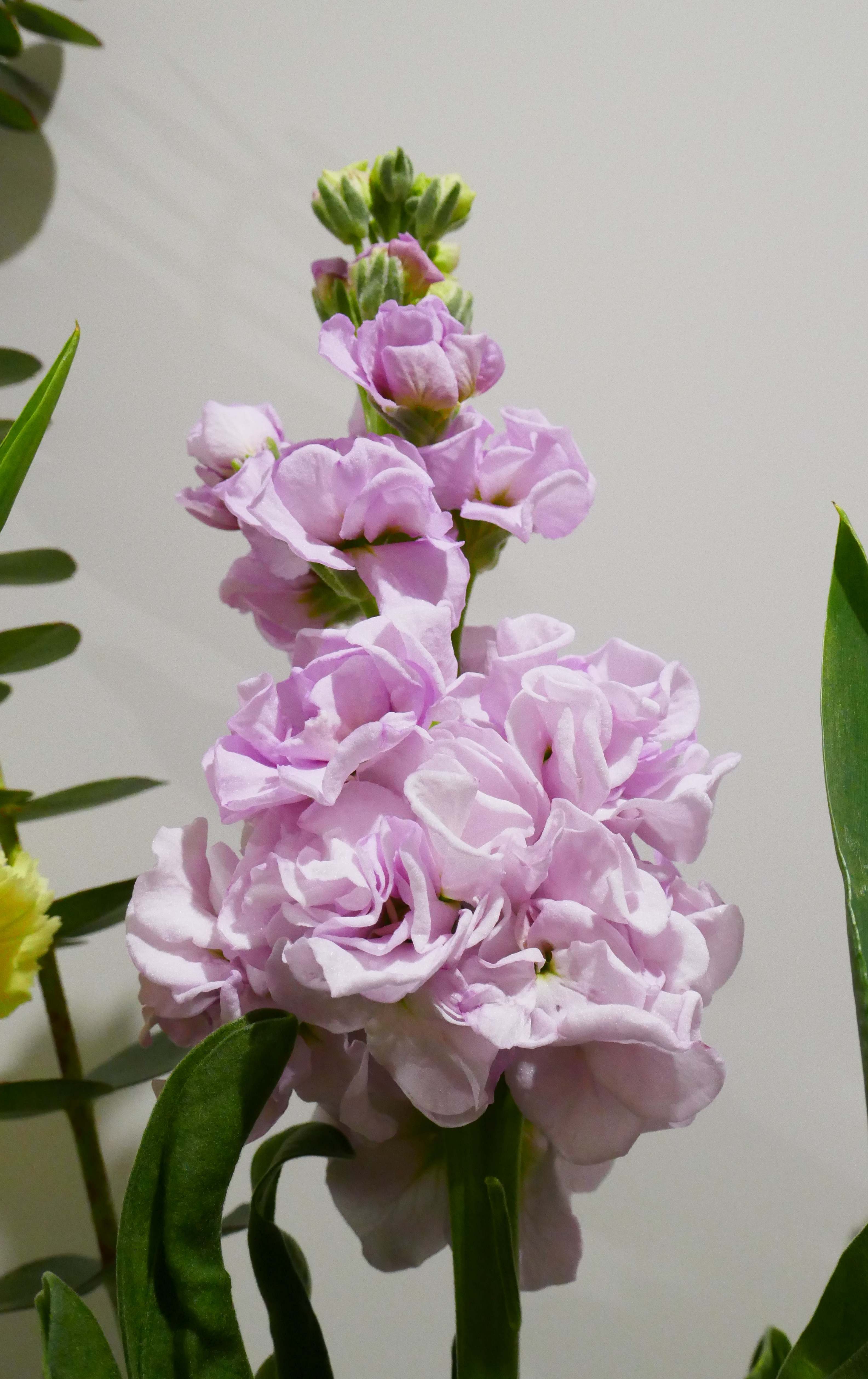 春の花である桜色のストックは、花びらが重ならずに咲く「一重咲き」から、